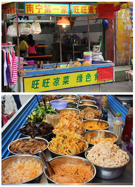 说起南宁本土老牌,特别是本地小吃,“建政路才是属于南宁本地人的美食天堂”这句话是一个生活在南宁几十年的网友说的。他还说,中山路的小吃是属于外地人认识南宁小吃的地方,南宁本地人是不会老去中山路吃小吃的,又贵又不见得美味,而建政路才是属于南宁人的美食天堂。 在建政路上,那些来自东西南北、形形色色的美食小吃丝毫不比中山路逊色。而见得最多的是老人们拿着个菜篮子,操着一口纯正的南宁话和菜贩子讨价还价,我想,那才是南宁人真正的本土生活!这才是南宁本土老牌 ====南宁味道浓郁的分割线==== 旺旺凉拌菜 记得很多吃货在微博上说过这家点,每天来买的人挺多的。价钱全部一样,爱吃哪样就选哪样,逛街的时候来一份凉拌菜,很开胃呢~ 吸客 这家店在建政路很久了。根据店里的常客介绍,说这里经常有老外到吸客来喝鸡尾酒,酒的味道很正,价格又比那些酒吧便宜得多。在这里酒量了得的小黛估计没法喝得醉呢,但是对于“一杯倒”的小当喝完没法继续品美味了。 百味凤爪 就在吸客的对面摆摊,在建政路的百味凤爪卖得那是相当的火爆。老板娘说,每天自己做几百斤的凤,从来都不担心卖不完,每天下午三四出来摆摊,七点多卖完了,很受欢迎。打听了一下,这些凤爪的味道配方都是老板娘自己研制的,做好成品后批发给别人或者自己卖。注意哦!这家店只有下午三四点才摆摊,只有周末才会早点出来摆。 宾阳扣肉,酸粉 这家店的老板娘给顾客做酸粉时,动作十分娴熟,有很细心,就好像那碗酸粉是做给自己的孩子吃似的。而在另一边的扣肉摊,有位老人家正在挑选扣肉,那位老人家说,他经常关顾这家的扣肉,做得挺正的,每次想到扣肉都先想到这一家。 水街老牌忠冠烧卤 这应该是一家很有人气的卤味店。路过的时候你可以看见,有很多人在挑选那里的卤味猪蹄,而那些卤鸭看起来也挺诱人的。 后座烤吧 BT辣翅 嗜辣一族的最爱,这家店主打的是BT辣翅,有趣的是辣的程度还有星级的,真的想狂辣一番,你可以选择这里,而吃不了辣的朋友,来这家店可能你只能拿着手机玩玩了。无意中憋见,在这还能刷卡消费,提供WIFI,真的是与时俱进呐!
