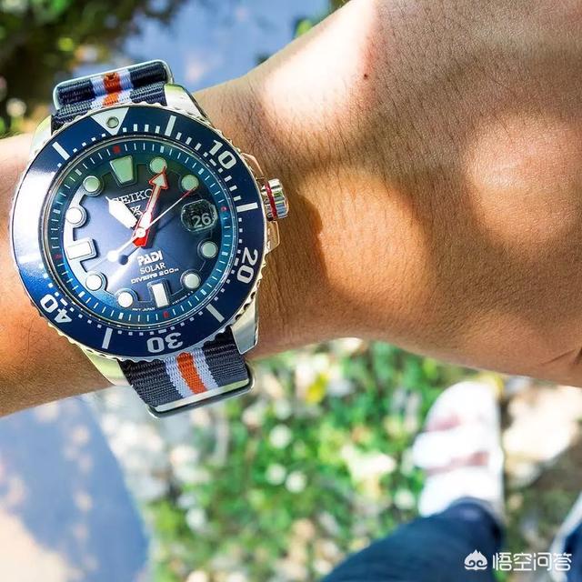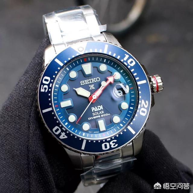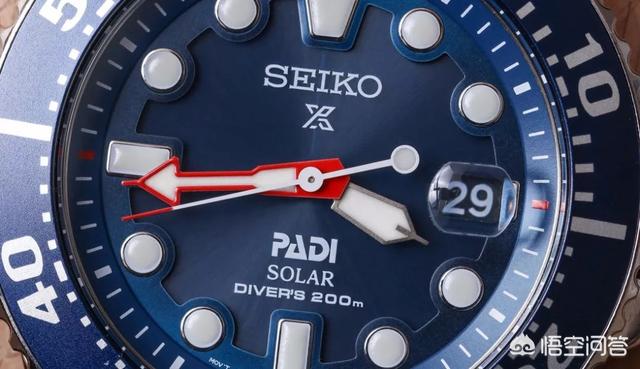 说太阳能潜水表自然会优先想到精工,精工和国际潜水组织PADI就喜欢开发这类的腕表,特征就是搭配PADI专属红蓝色以及显示该组织的标记的潜水表。