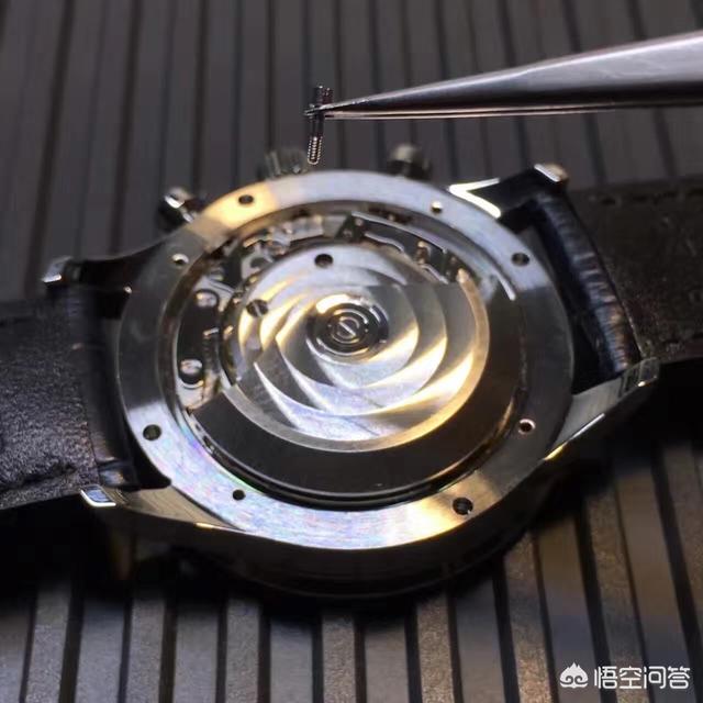 第一部分避震器部分是手表机芯的心脏,所以这个部分很多复刻版本用的机芯都是和正版有很多区别的。第二个部分就是做工,包括机芯的刻字,打磨,上面的烫金,拉丝,像日内瓦纹这些的打磨,都会有很多差异的。第三部分是手表的摆轮,一个自动机械手表能不能很好的储存能量,与摆轮是否正常是息息相关的。摆轮上的做工,以及中轴的做工这些都是有很多值得查看的。正版的红宝石的颜色基本上都是比较红润的,豁口基本上都是葫芦状的,而复刻版的有很多都是采用的三角状的,而且红宝石的颜色没有正版那么明亮。