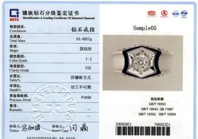 说完了鉴定标准,再来说说鉴定机构:其实,最好的办法就是送去国检中心,国家珠宝玉石质量监督检验中心NGTC(镶嵌钻石分级)证书,该证书的特点是不仅可以鉴定裸钻,还可以对于镶嵌钻石进行鉴定,同时也是美国宝石学院(GIA)在中国大陆唯一的合作伙伴。