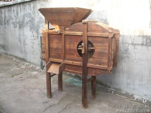 4.扇车,现在把打谷机上挂一个蛇皮袋就可以把谷扬干静了。