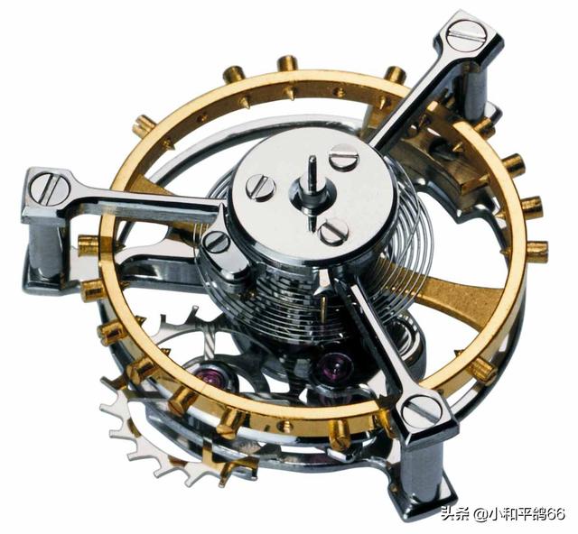 多轴陀飞轮,厉害了!它的立体旋转多维运动,简直就像是在你手上来耍了一场大马戏团杂技!这项技术等于将陀飞轮技术进行了翻天覆地革命,它更能展现一个制表大师在现代科技手段的辅助下进行艺术创造的能力。多轴陀飞轮的实际,就是有几根框架轴就有几个陀飞轮被整合成多轴陀飞轮。最容易认出来的,非芝柏三金桥陀飞轮莫属,它简直可以称之为世界上最美的陀飞轮手表。其中内框架轴每45秒旋转一圈,外框架轴每1分15秒旋转一圈。