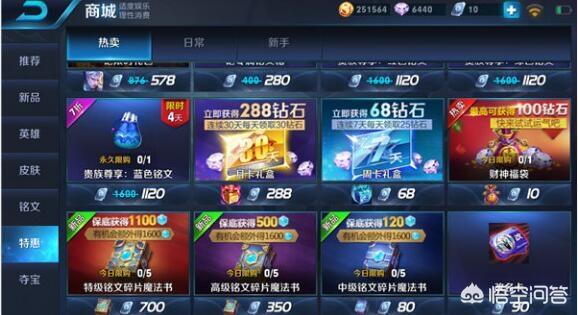 特惠商品购买铭文也可以直接用点券购买,3级铭文6块钱,4级铭文12块钱,5级铭文32块钱,这种铭文获取方式不太建议购买。