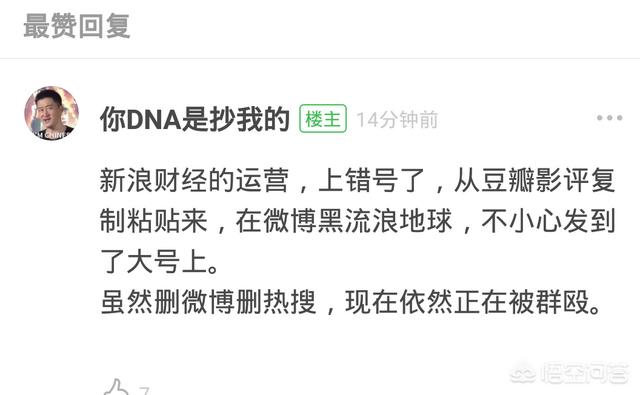 刚刚看了新浪财经官网对电影《流浪地球》的评论,我认为对这种评论大可不必去理睬。因为这个评论,没有论点、论据和论证过程,纯属污蔑、谩骂的本事。鲁迅先去曾说过,恐吓和谩骂绝不是战斗。对于这样一部以中国人所熟悉的情感结构与审美方式去讲述一个关于科技、时空、文明的人类命运共同体故事的影片,做为中华儿女应该为其感到骄傲和自豪,而不是怀着见不得别人比自己好的灰暗心里,对影片指手划脚、毫无理由的进行谩骂攻击。 |