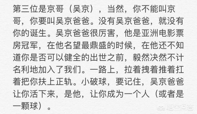 导演郭帆在微博中谈及吴京的时候是这样说的,:“小破球,没有吴京爸爸,就没有你的诞生,是吴京爸爸让你活下来,是他,让你成为一个人(或者是一颗球)。”这段话足以说明吴京对于这部电影的重要意义,如果没有吴京的投资,这部电影可能要砍掉非常重要的空间站环节,然后就在2018年暑期匆匆上映,对标《我不是药神》,那样的小破球,或许就真的破了。