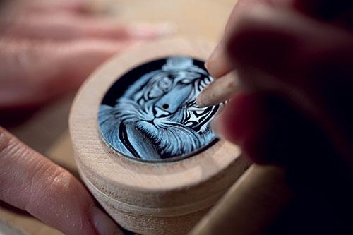珐琅表是一个历史命题,早在17世纪就已经从法国传入日内瓦,因为当时的珐琅师受到宗教迫害,而日内瓦却为他们提供了自由发挥才情的热土,由于人才的聚集,所以也成就了日内瓦作为珐琅中心的特殊地位。这些工匠擅长把绘画通过珐琅工艺移植到表壳或表盘上,而这些属于微绘珐琅的类别,所谓珐琅,就是矿物研磨而成的釉料,将它们稀释并用画笔涂抹在金属之上,然后经过800多度的烧结,最后固化在表壳或表盘上,完成了我们所认知的珐琅表概念。