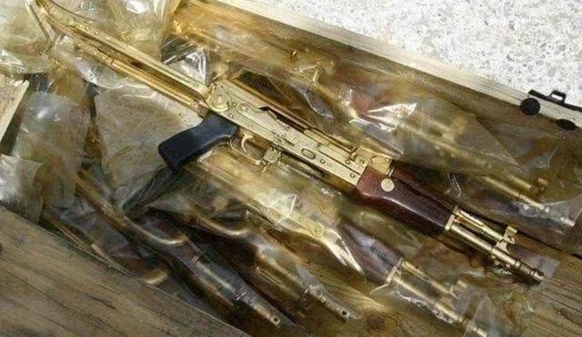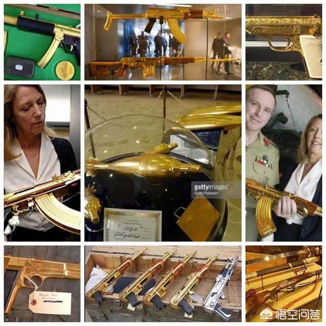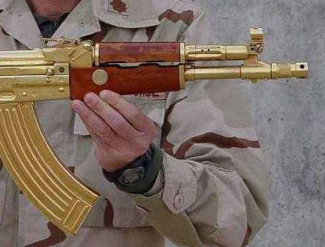 这些还只是萨达姆的冰山一角,除了这些普通用具之外,萨达姆所收藏的很多武器枪支其实也都采用了纯金打造或者镀金的方法。