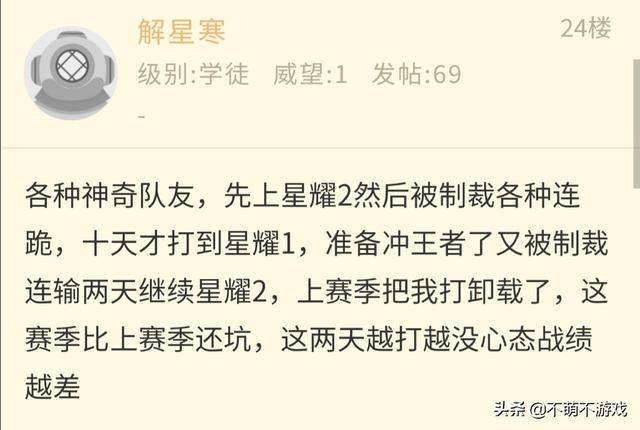 虽然王者的难度大大降低了,但是并不是随便一个玩家都能够上的,折翼于星耀,归根结底还是实力不够。当然机制小小的发挥一点作用,基本上就卡住一大部分玩家,大家觉得呢?
