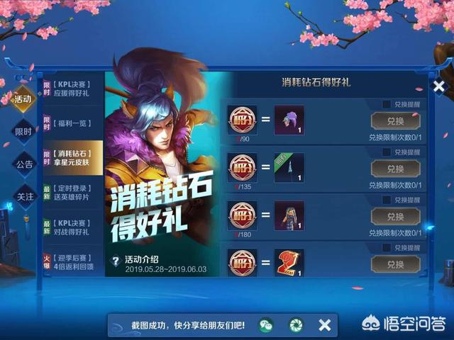 这个活动可以说是照顾了一部分的有钻石不氪金的老玩家,新手玩家的话,没有钻石,就不要兑换上面的这个活动了,还是把钻石留下来兑换王者水晶里面的皮肤吧!感谢大家的观看,更多王者荣耀资讯请关注荣耀解说王哥,回答如果对你有所帮助,请你小编点点关注,如有不同意见,请评论区留言。