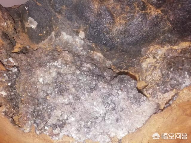 落地与土高温烧痕,熔壳结合部遇水高温产生晶体,这块石头是我在无人区捡到的,绝对没有作假疑问。至于是什么,还需要专家和藏友们多多指导。 |