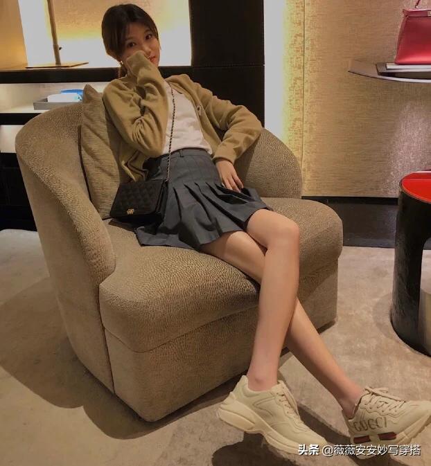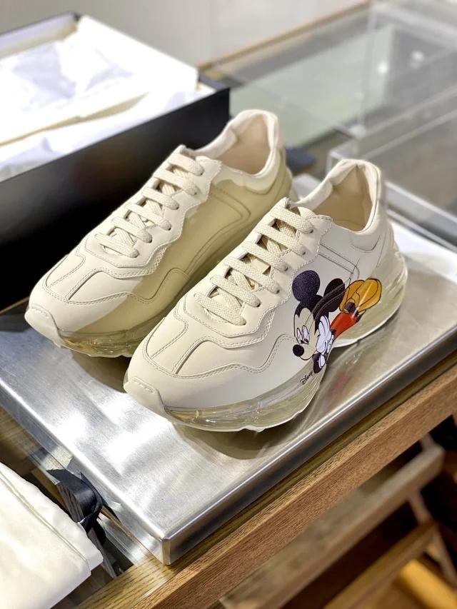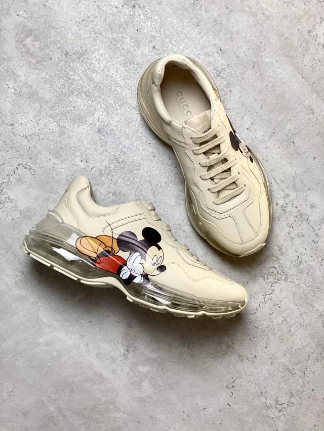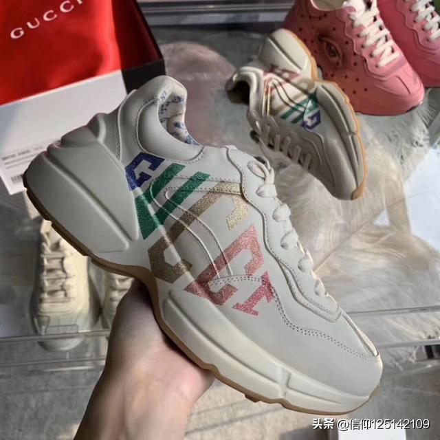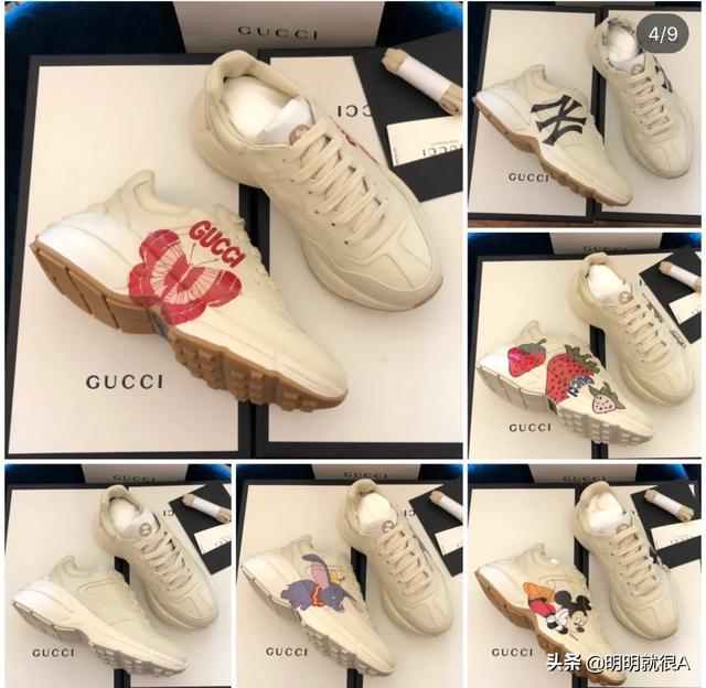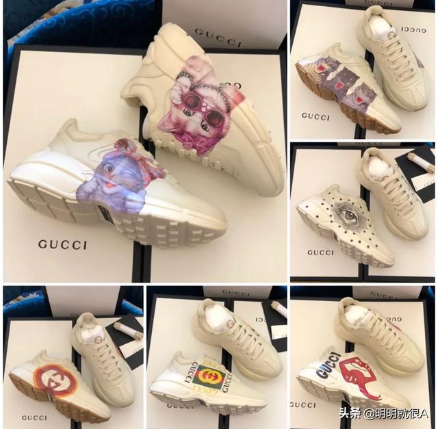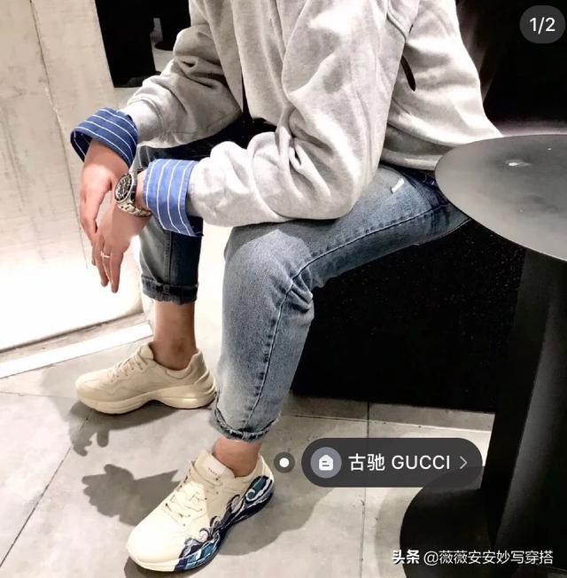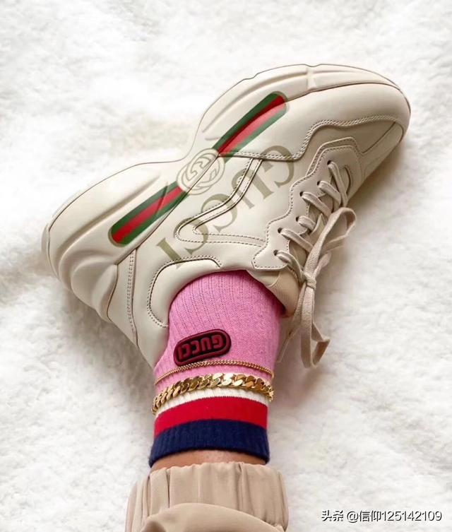 这双老爹鞋叫rhyton,很有复古的意思。依据图案不同,分了好多款式。有logo的,有今年限量的米奇,还有其他各种图案。卖的最好的还是logo系列,红绿条。这款鞋,在Gucci目前所有的休闲鞋里是非常舒服的一款鞋,高度适中,米色的颜色也非常百搭,女款的价格在6500左右,男款在8000左右。时尚百搭,最重要也非常舒适,品牌知名度也是和baleiciaga不是一个级别,所以会卖的非常好。下图给你一些这款鞋的穿搭,基本不挑衣服,怎么穿怎么有味道~
