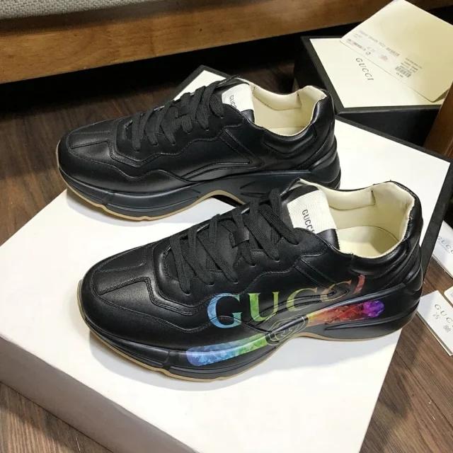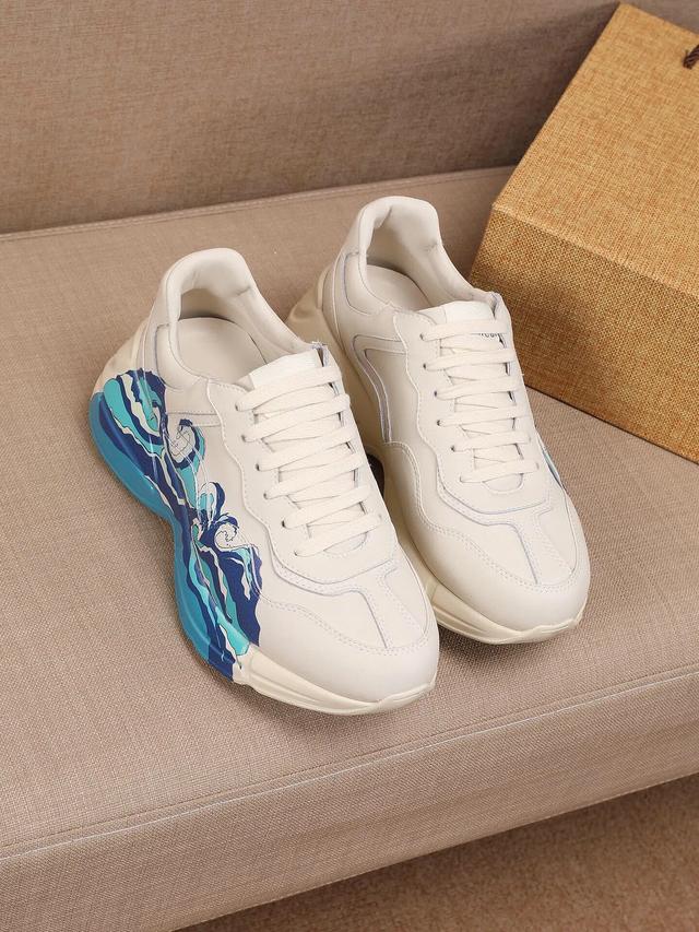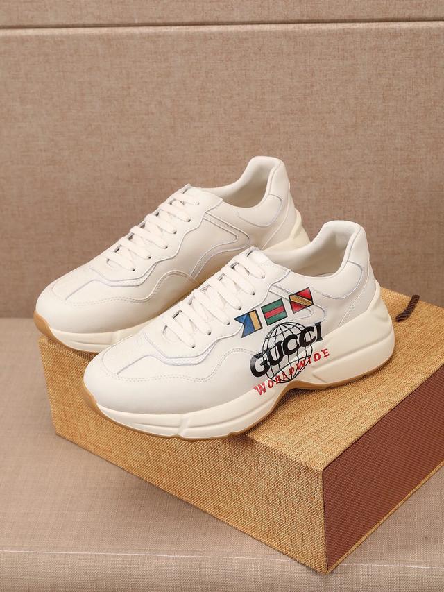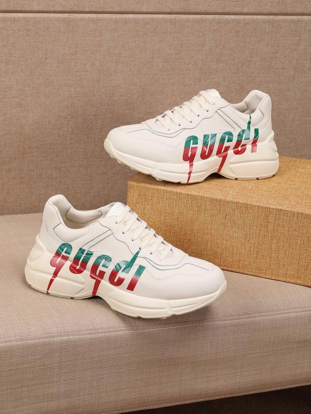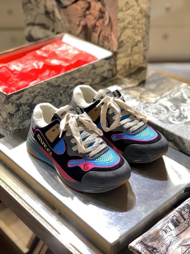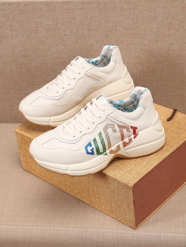 【GUCCI】 (情侣款)爆款老爹鞋。鞋面采用进口牛皮,舒适羊皮内里,脚感一级棒,原版轻便减震加厚发泡大底,简约拼色,百搭帅气 |