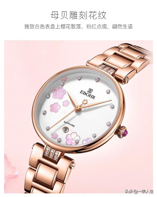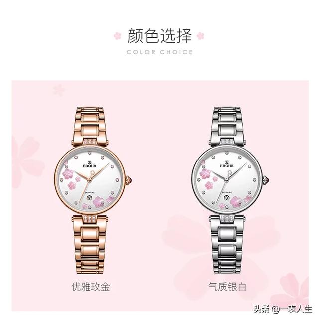 依波的樱花系列手表,造型简练婉约,充满青春气息。同样是采用316不锈钢材质制造的表壳表带,日本石英机芯,30米防水。除了钢带,还有皮带款式。