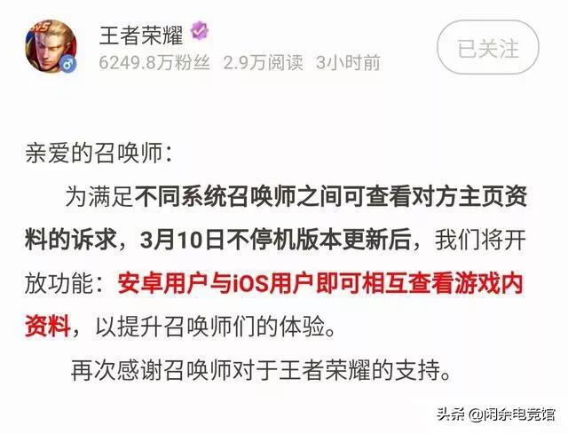 系统优化开放了新功能,让安卓用户和IOS苹果用户相互查看游戏资料,这个一句话的更新,不到半天就进入热搜榜,可见关注的玩家热度有多高了。整个游戏主分安卓和苹果两大阵营,而且这几年来两大阵营的玩家互死不往来,因为谁也看不到谁的游戏资料,就算私底下的好朋友也无能为力,想看我战绩就用我手机看吧!