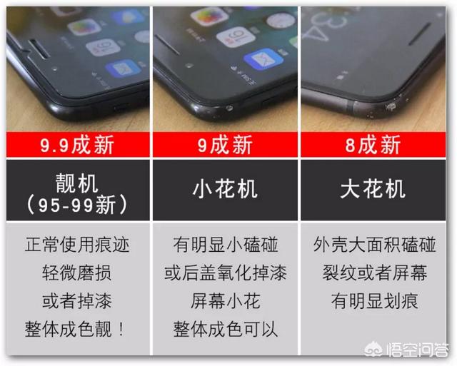 9成新以下,俗称“大花机”,可以自己使用,有强迫症的人别用了。外壳大面积磕碰,有裂纹,屏幕划痕明显或屏幕碎外屏。