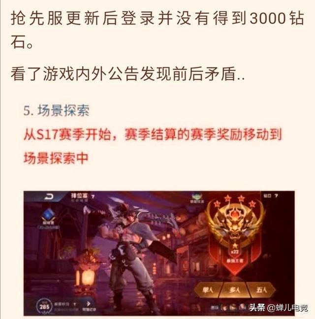 第一个方面就是对于钻石的获取没有之前那么容易了,以前的时候获取钻石可以说是相当的容易,每到一赛季王者荣耀官方都会根据大家的段位进行奖励相应的钻石,但是下个赛季当中不仅需要段位,需要大家完成一些任务才能拿到,这也就意味着钻石的获取比之前更难了,所以在此时此刻大家手中的钻石一定要尽量存着一些,因为新赛季开启以后将会有一些活动值得大家注意,比如有哪吒这个英雄的新皮肤上线,将会加入到王者水晶当中,就意味着会需要大家的一颗王者水晶,但是想要获取王者水晶是有一点难度的,是需要大家不少的钻石。