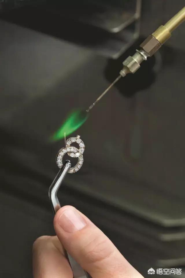 在BVLGARI珠宝装配流程中,各个部件用氧气焊枪焊接在一起。