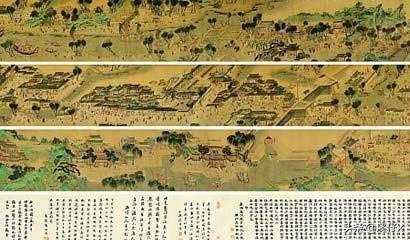 以精致的工笔记录了北宋末期、徽宗时代首都汴京(今河南开封)郊区和城内汴河两岸的建筑和民生。该图实际描绘的是北宋京城汴梁以及汴河两岸的繁华景象和自然风光。