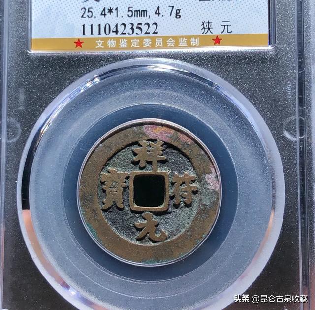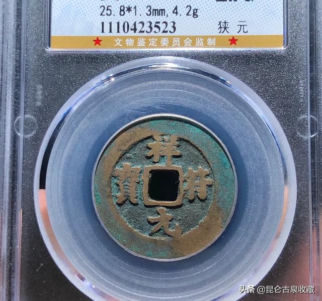 您好。直径25.6厘米的祥符元宝,我还真的是没有见过。我自己的一枚祥符元宝,重量好像是四点几克。这个祥符元宝存世量应该比较大,历代作为压箱底的喜钱的,所以个人觉得价格应该不会太高。没有入盒子,就不发图片了。 |