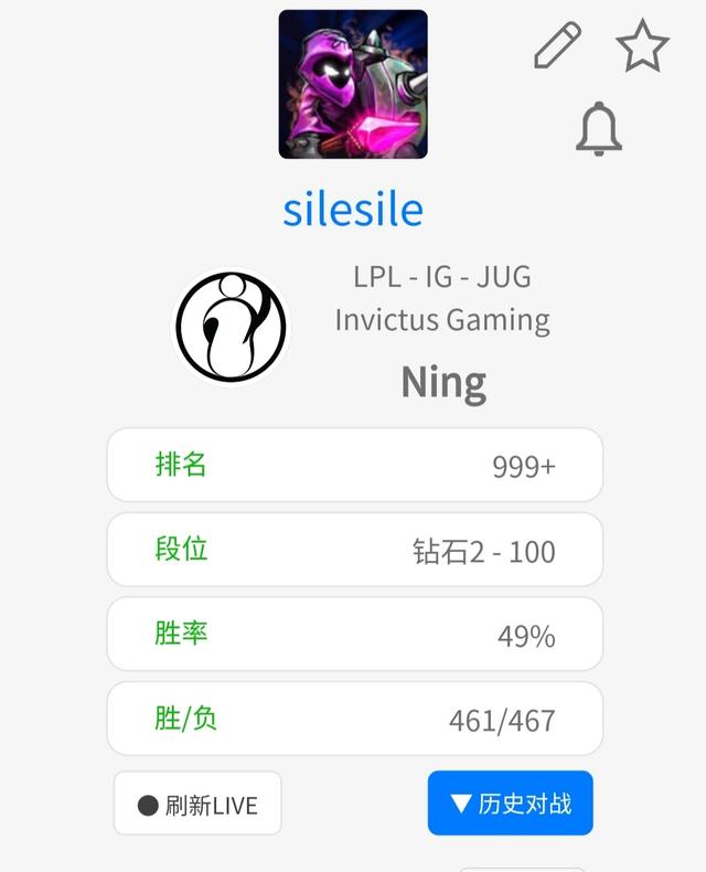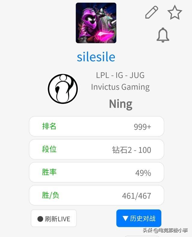 前言:S10的比赛正在如火如荼的进行中,lpl赛区的春季赛也已经过半了,目前es战队,ig战队和fpx战队获得了前三名的位置,但是只有ig战队在比赛中失败过一次,所以今年他是非常有机会再次获得常规赛的第一名的。线上赛开始之后,Ig战队也是不断的进行着打野选手的轮换,最近一段时间,宁王一直在替补,而他的韩服分数也已经降到了钻石二!