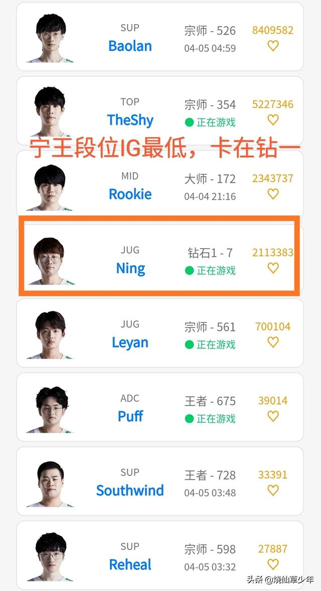 关注比赛的玩家能够发现,IG战队最近一段时间实行了打野轮换制,宁王和小乐言一直都在轮换着上场打比赛,而且遇到一些强队的时候,IG战队还是比较喜欢使用宁王,主要还是因为宁王在比赛中凶悍的风格和ig战队非常匹配,而且只要他出现在赛场之上,就会死死的蹲守住上路,帮助theshy发育起飞,可是在最近的几场比赛中,ig战队并没有选择让宁王出战!