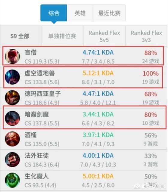 从数据来看目前9.4版本除了卡萨擅长的盲僧,虚空遁地兽表现也非常不错,盲僧一共使用了24场胜率高达88%,虚空遁地兽19场胜率更是100%,此外皇子、剑魔以及最近卡萨经常使用扎克也都表现不错。