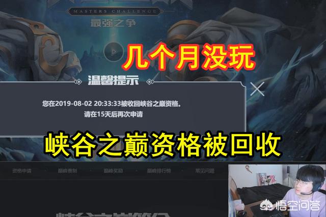 然而得到这个资格后也是有限制的,并不是说你得到了这个资格就可以任意妄为,你同样得遵循峡谷之巅的规则,不然这个资格就会被回收。近期姿态直播时,他的大号就被收回了峡谷之巅的资格,对于这一点,他本人虽说很意外,但也知道被回收的原因。直言道:我就几个月没玩就回收了吗?这可咋整啊?很明显,姿态被回收的原因就是因为长久为在峡谷之巅进行游玩,这时可能就会有玩家问了,除了这个还会有其他要求吗?这一点,炫神在直播时就提到了。