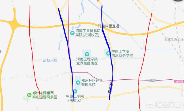 第一,我认为是向南的通道还是太少。现在从郑州经过龙湖附近向南的道路一共有四条,分别是西侧的大学南路,107国道、郑新快速通道,东侧的中华路,而穿过龙湖镇的只有107国道和郑新快速通道。107的路况我想很多人也都知道,每天有大量的卡车经过,郑新快速通道还好,但在龙湖镇北部依然堵车,很多107、中华路的私家车在龙湖便会转向郑新快速通道然后上中州大道。第二,龙湖镇本身车辆较多,受附近商业影响也会造成堵车。无论是107国道还是郑新快速通道在龙湖以南都不算堵,一旦进入龙湖就立马行驶缓慢,相比之下南下堵车的情况较少,107国道在龙湖镇实际通行道路变窄,小刘桥经常堵车,给后续车辆造成很大压力。而郑新快速通道更会汇集来自华南城、中华路的车辆,一般在双湖大道容易堵车。