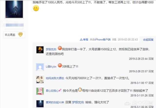 一般来说一件武器强化12在90版本都不会超过+12钻石强化卷的价格,在那会我为了把圣耀强化到12花了2.2E都觉得黑,但是在95版本不知道是不是几率调低的原因,很多玩家少则一两亿,多则10几个亿才上12,而楼上发帖就是比较黑的玩家,1000RMB上3亿多得价格才上12,甚至有些玩家花了1500块钱都没上12。几率确实感人。