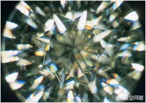 CZ毕竟属于合成品,所以对他的加工往往是比较粗糙的,所以在放大镜下观察,会观察到他的切工非常差,除了对称较差以外,还会看到非常明显的抛光痕等特征。另外,由于他的硬度相对较低,所以他的刻面棱是比较圆滑的,
