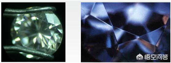 碳硅石的双折射率高达0.043,所以利用十倍放大镜观察,就可以观察到很明显的刻面棱重影,而这是合成立方氧化锆和钻石没有的鉴定特征。