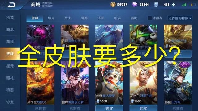 2.所有商城皮肤,需41900元,因为光牛年限定四款皮肤就要1000多,这肝帝玩家真是太可怕了