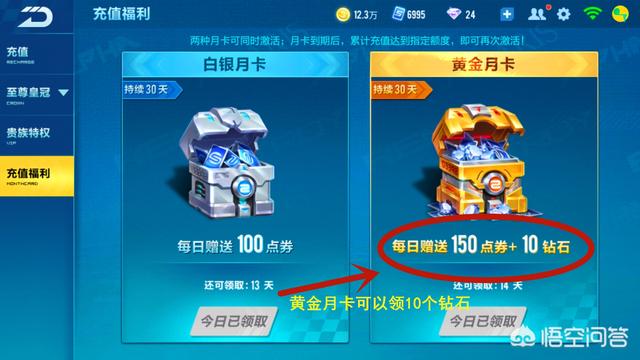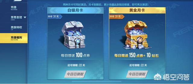 这个黄金月卡也是可以领取10个钻石,但是同样,你累计充值到达指定的额度,才能激活黄金月卡,持续30天,所以这你也是一个间接领取的方式,但是你还得充值,每次累计充值的额度都是不一样的,所以你得按官方的要求来。