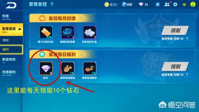 如果你QQ飞车是至尊皇冠号,是可以每天领取10个钻石的,这10个钻石是你至尊皇冠的每日福利礼包,每天记的领取,但是至尊皇冠号,有个前提,就是你需要充值12元激活,才能每日领取10个钻石。