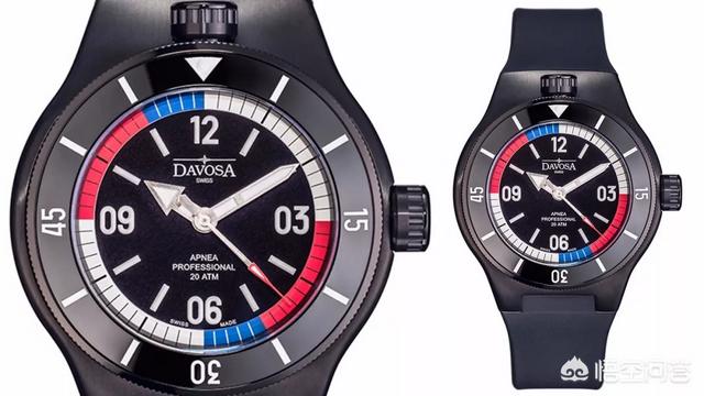 DAVOSA Apnea Diver第一个引人注目的新功能是表盘周围的多色圈独特设计。使用的三色分别代表法国自由、平等、博爱的民族运动色彩。事实上,蓝色,白色和红色的颜色和国际公认的呼吸运动在自由潜水训练有着异曲同工之处:在蓝色阶段采取5秒呼吸,(白色区域)持续憋气15秒,然后(红色区)排出空气超过10秒。