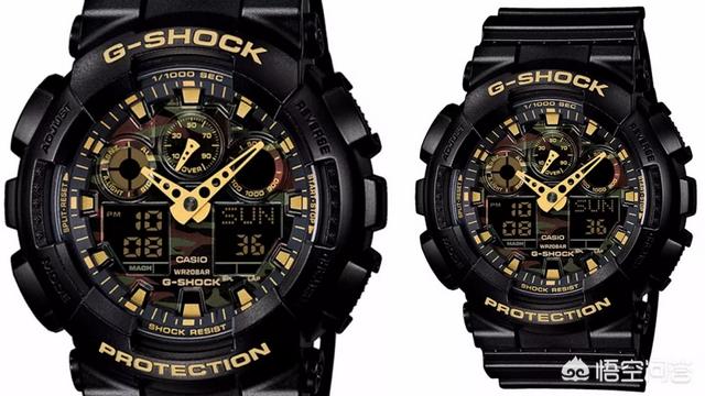 GA-100CF-1A9以人气款GA-100为原型,则以黑色为基调,辅以迷彩表盘与金色字体呈现。大表径的设计也增添了粗犷的男性魅力,而且腕表配备1/1000秒秒表功能,极具实用性。