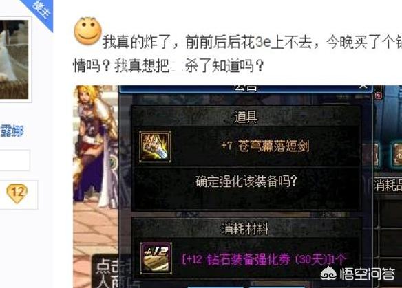 原来这位玩家在刷深渊的时候,居然野生了一把苍穹幕落短剑,正好自己能用,于是他觉得自己的运气来了,决定好好打造一番,最低标准是武器强化到12,于是准备了3个亿金币,开始他的强化之旅,令人没有想到是此次强化犹如一场噩梦,这把苍穹武器怎么强化都上不去,总是徘徊在升级和掉级之间,结果3个亿金币都用完了,苍穹武器掉到了7。可是这位玩家很不甘心,强化的感觉有点上头了,既然去拍卖行买了一张钻石强化券去强化,要知道这个券子的成功率足足有90%,所谓理想是美好的,现实是残酷的,这张券子也没能让武器强化到12。