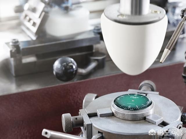 该过程中的后续步骤将半加工坯料转变为钟表的表面。在获得“dégradé”饰面之前,将几层绿漆涂在先前镀锌的表盘上。这种效果是通过喷涂黑色油漆来实现的,并且非常小心,使表盘周边的色调比中心的色调更深,从而产生单独的色彩渐变,使每个表盘都独一无二。然后将漆面表盘在窑中加热以燃烧颜色。钻石很快会穿过这些层,形成十二小时指数中的八个。这使得原材料再次可见,因此六十年代年度版的小时数用德国银和白色上色。