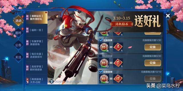 王者荣耀在3月10号的时候进行了一次更新,上线了很多活动,其中一个老玩家都比较喜欢的“钻石消耗活动”也是再次出现在了大家的面前。