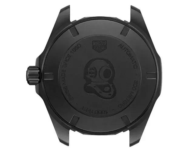 ▲ 竞潜300的后盖上刻有潜水头盔的图案