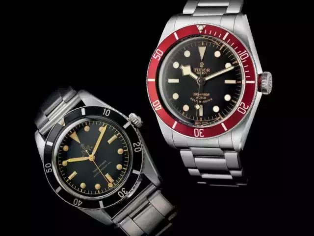 ▲ 上世纪60年代的帝舵Submariner潜水表(左)和如今的启承碧湾潜水表(右)