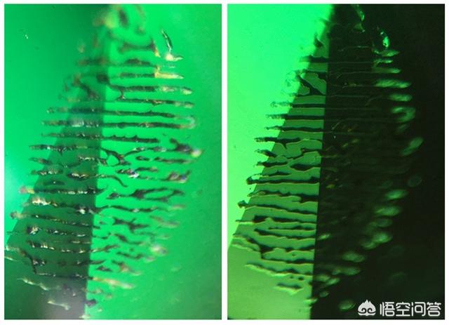 ②玻璃:玻璃的折光率很低,没有钻石那种闪烁的彩色光芒;尤其是沉入水中,玻璃制品光彩全无,立即露出马脚。