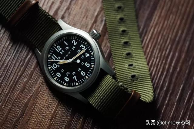 军表推荐汉米尔顿卡其野战系列38mm腕表,相信身边很多人都跟我一样,对这款表“一见钟情”。想来原因无非两点,一是外观,盘面是大三针布局,时标是美式军规字体,三角形夜光显示,还有正宗的军表带,可以说这次复刻最遵循原版,很吸引人。