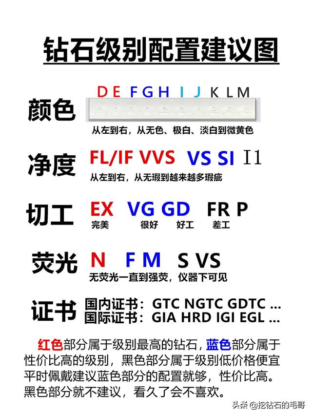 因为每个钻石的4C不一样,每个珠宝品牌的钻石定价不一样,所以我用裸钻从价格和颜色差异上给朋友分析一下选哪个颜色。