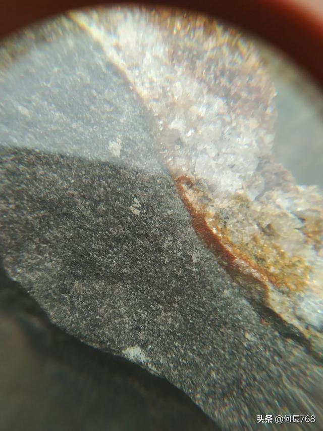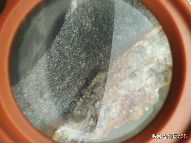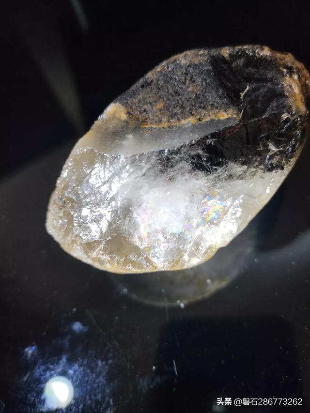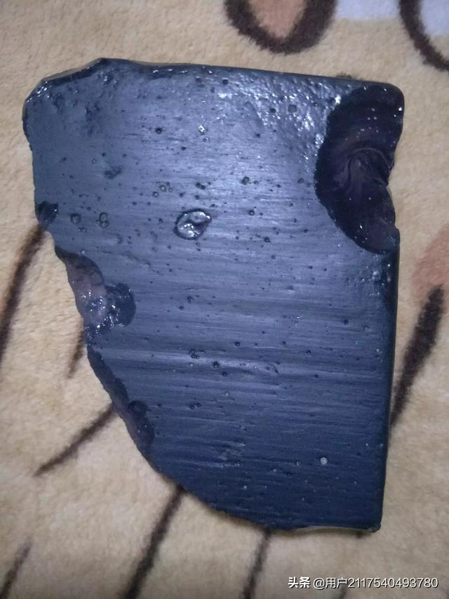 我的黑钻石陨石是唯一的陨钻实物!它整块厚度有1.5厘米,有一层厚度为三毫米左右黑色的钻石晶体。黑色的钻石晶体在阳光的照耀下七彩霞光闪烁。经过反复的物理检测,完全符合精品钻石的标准。整块陨石两种颜色,余下厚度为1.2厘米是棕色晶体。(从陨石掉碴那里可以看清黑色的钻石晶体) |