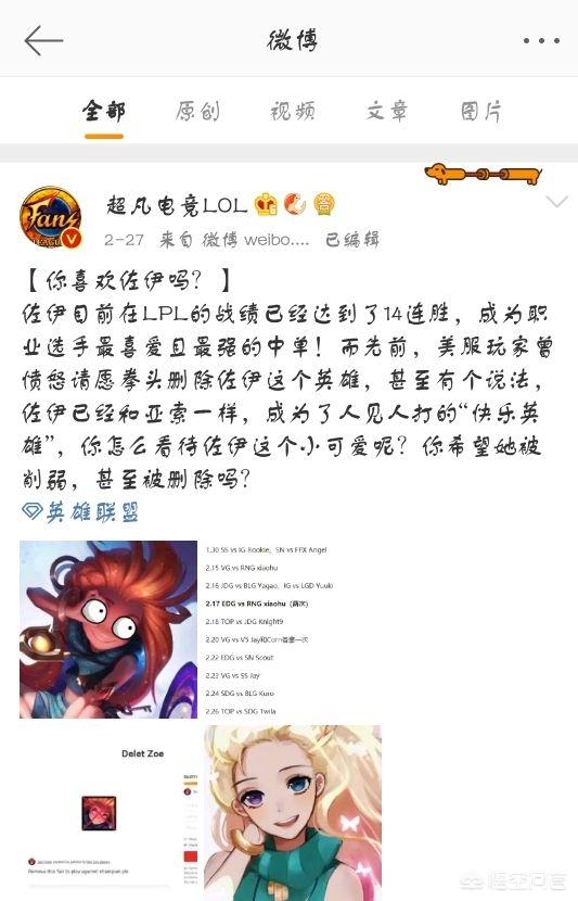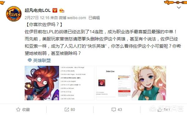 今日超凡电竞LOL也是发表了这条微博,美服召唤师把佐伊评价为亚索一样,是高人气的快乐英雄,拳头公司毕竟是美国出身,他们对于美国玩家的意见,还是比较听取的。不过好不容易做出的英雄,怎么可以说删就删呢?拳头公司向美服召唤师保证,在接下来会对英雄做一些小小的改动。