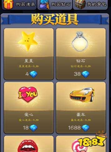 1:在游戏商城内陈列出了可以赠送的礼物,在商城内购买礼物之后即可在游戏对局内将礼物赠送给心仪的玩家。不同的礼物对应增加不同的魅力值,在对局内也有着不同的送礼特效。