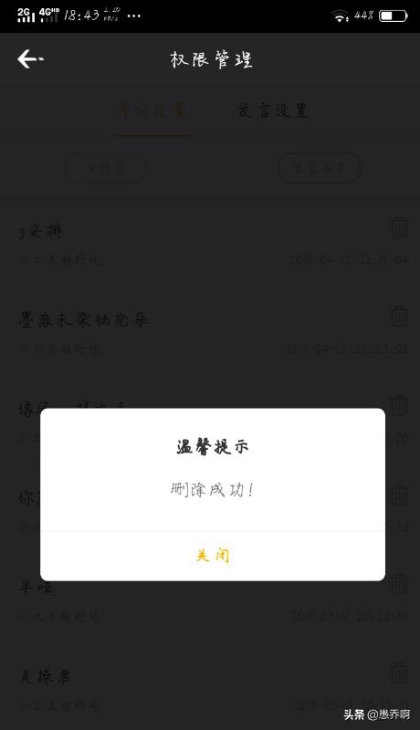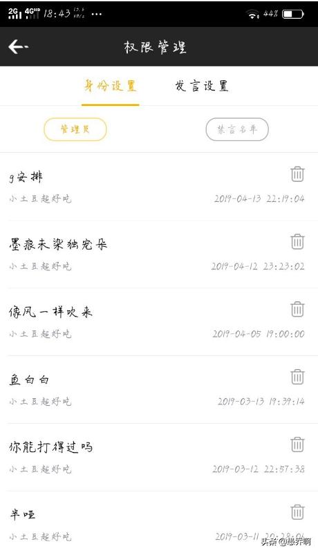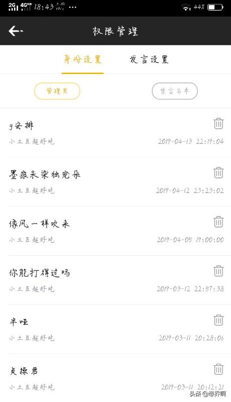 3、身份设置的页面,选择要取消房管的人,点击后面的删除图标。
