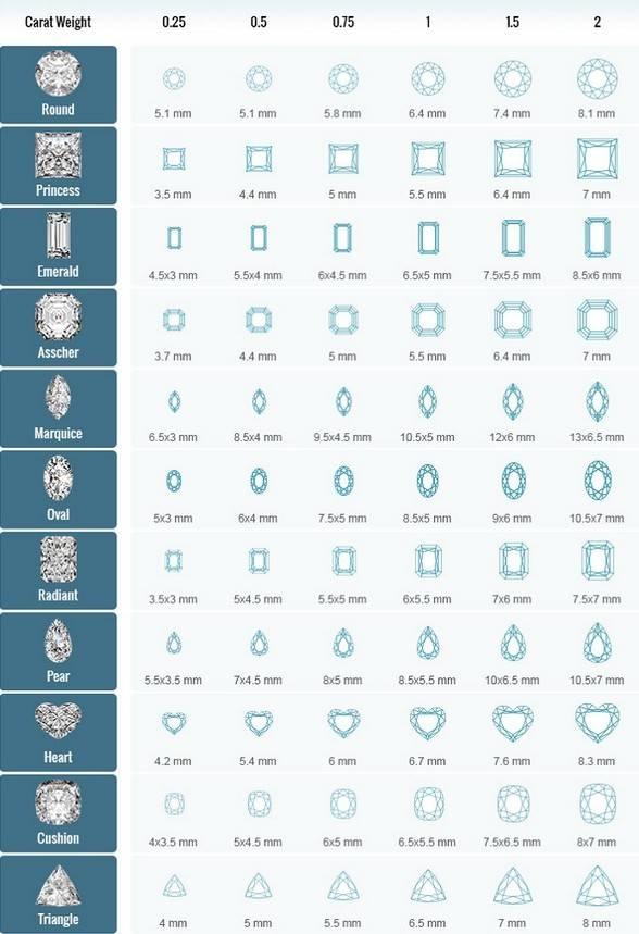 b、在同样重量下,选择方形切割的钻石更为有利。公主方切割的钻石视觉效果会比圆钻大15%左右。