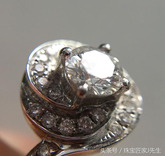 b、镶嵌中使用的钻石配石虽然小,但使用高白钻也会比普通白钻做出来的成品更白更闪亮。